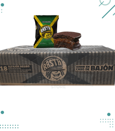 Alfajor Rasta Relleno con Dulce de Leche, Recubierto Con Baño De Reposteria NEGRO (70gr) (Caja x18un) 1260gr