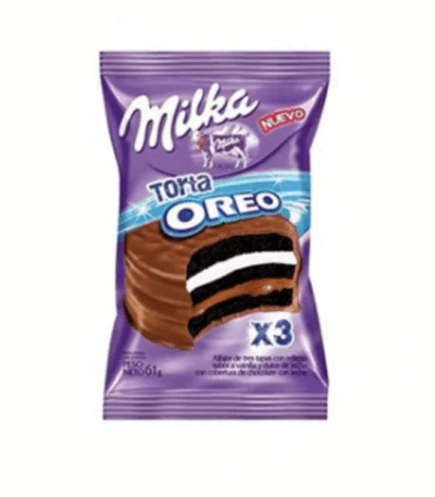Alfajor Milka Torta Oreo, relleno dos Capas de Dulce de Leche, cubierto de Chocolate (61gr.) (CAJA 36u.)(2.1 KG)