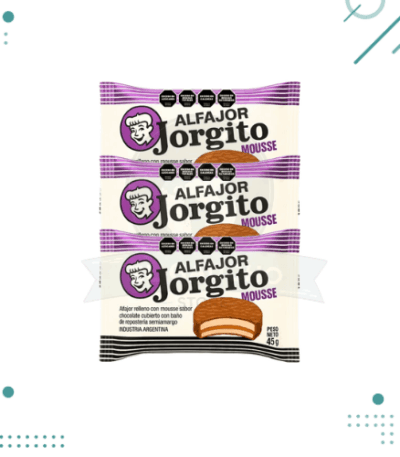 Alfajor alfajorcitos Jorgito Mousse, Bañado en Chocolate Negro (6 unid) (Pack 18u) (2790kg)
