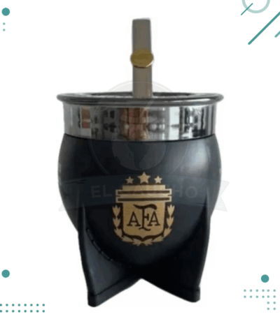 Mate Camionero Croquelado NEGRO con virola acero + Bombilla de regalo