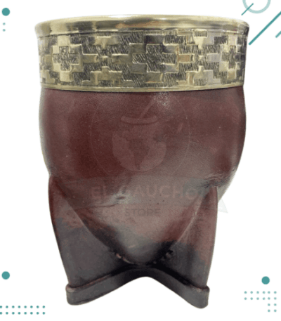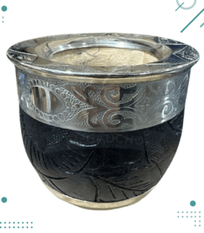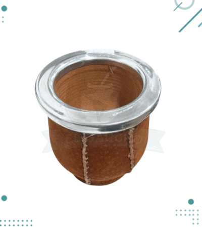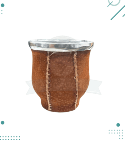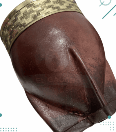 Mate Calabaza Imperial de Cuero Crudo, Cincelado, Virola y Fleje de Alpaca