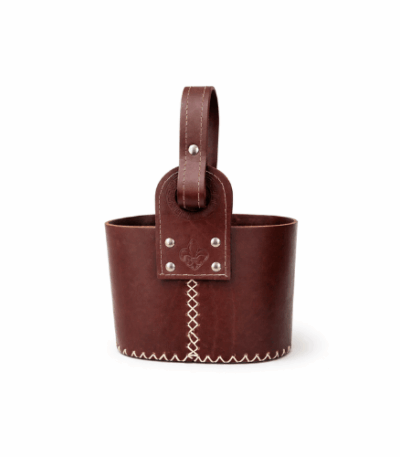 Bolso canasta matera 1 Litro Flor de Liz MARRON OSCURO CUERO GAMUZADO