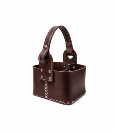 Bolso canasta matera 1 Litro Flor de Liz MARRON OSCURO CUERO GAMUZADO
