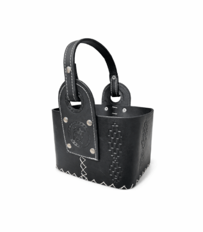 Bolso canasta matera 1 Litro Flor de Liz NEGRA CUERO GAMUZADO