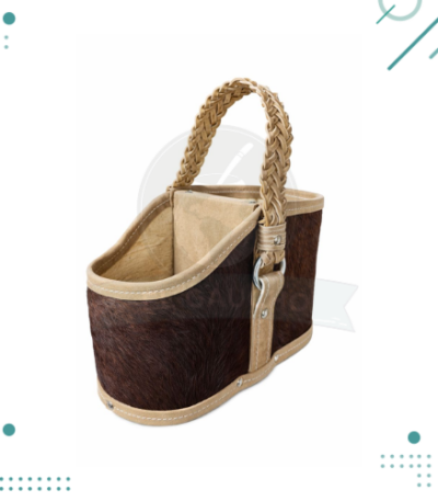 Porta Mate Para Auto De Cuero Con Pelo De Vaca MARRON