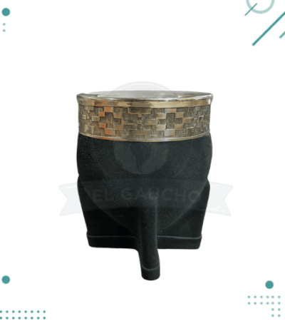 Mate Roma Calabaza , Alpaca Cuero Tallado (Color NEGRO)