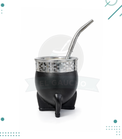 Bolso Matero Cuero Premium con Porta Bombilla y Porta Termo (Color Negro)