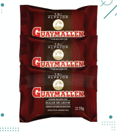 Alfajor Guaymallen TRIPLE negro, relleno con Dulce de Leche, con baño de Repostería de Chocolate (70gr)(Pack de 3u.)(210gr)