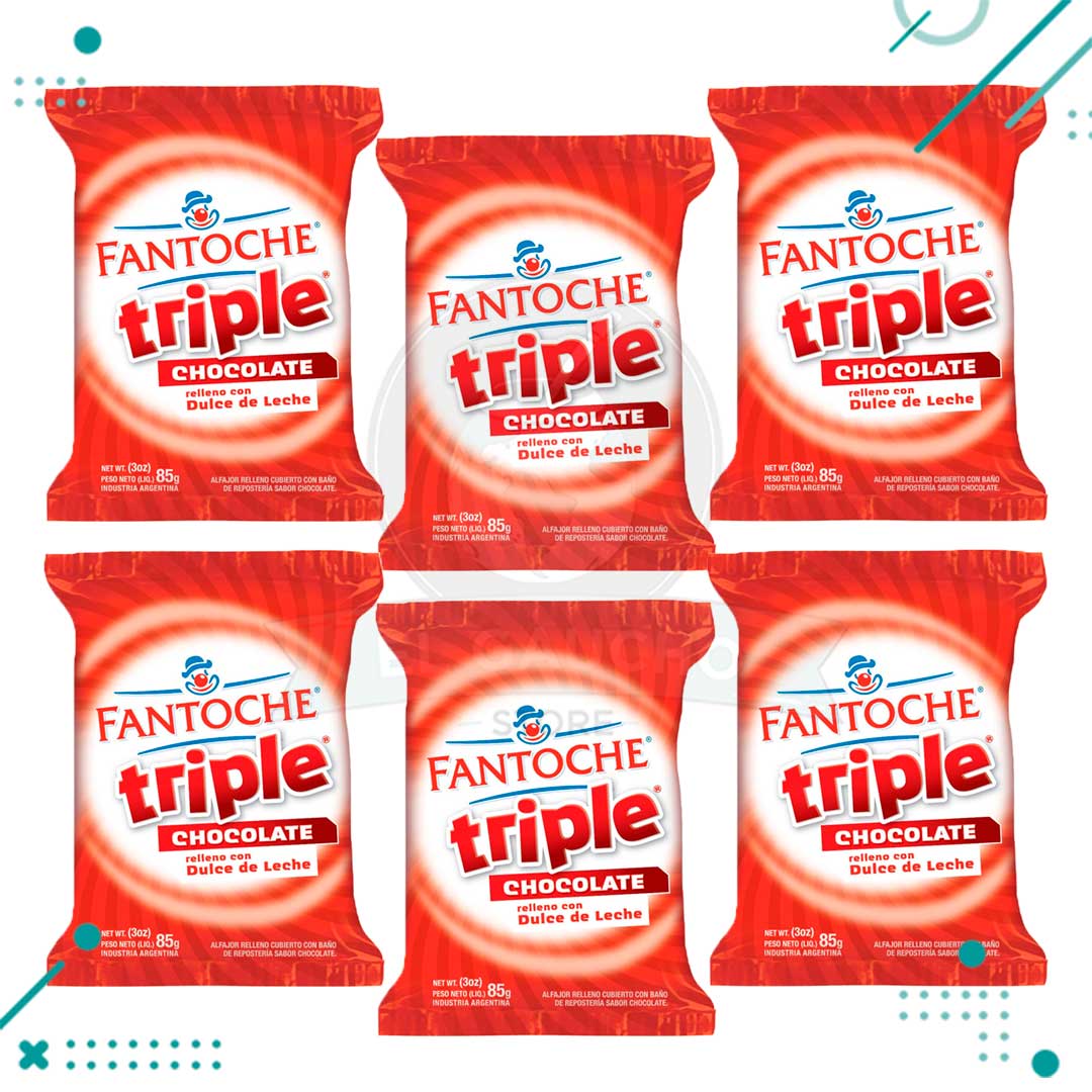 Alfajor Fantoche Triple Chocolate, Relleno con Dulce de Leche (85gr) (pack de 6u) (510gr)