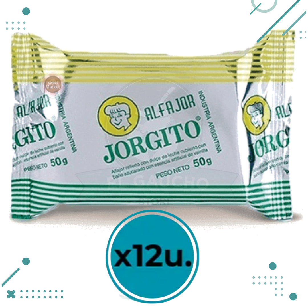 Alfajor Jorgito Azucarado Blanco, Dulce de Leche con Baño Azucarado (55gr) (Pack 12u) (660gr)