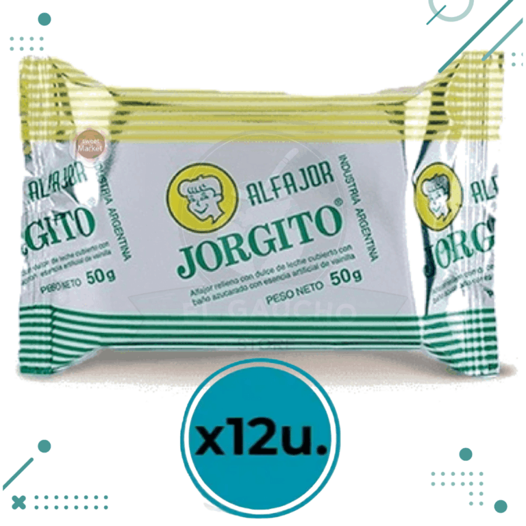 Alfajor Jorgito Azucarado, Dulce de Leche con Baño Azucarado Blanco (55gr) (Pack 24u) (1.4kg)