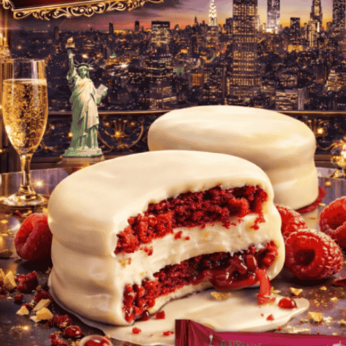 El Alfajor Red Velvet Cheesecake NY Style es una propuesta irresistible inspirada en los sabores clásicos de la pastelería neoyorquina. Combina suaves tapas estilo red velvet con un relleno cremoso sabor cheesecake, logrando una mezcla equilibrada entre dulzura y suavidad.