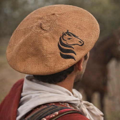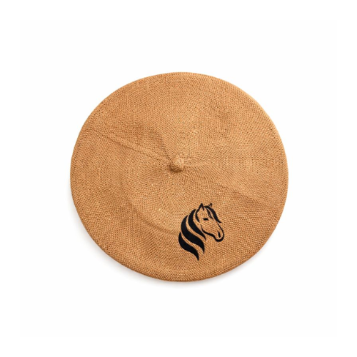 Boina de Hilo Vuelo 34cm, Bordada, Diseño Caballos COLOR MARRON