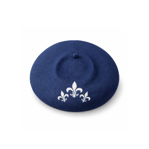 Boina de Hilo Vuelo 34cm, Bordada Flor de Lis, Color Azul
