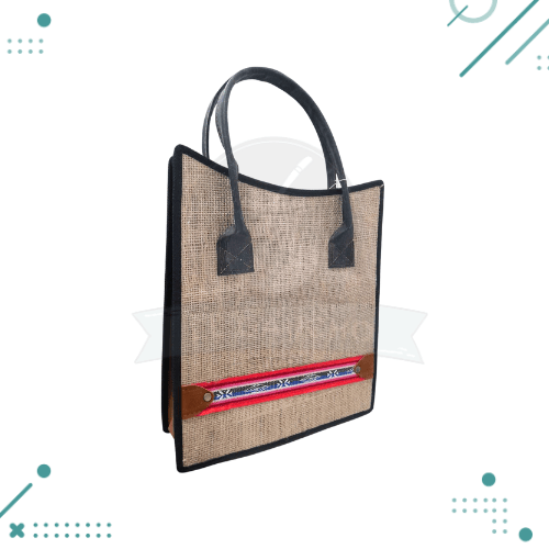 Bolso Canasta Matera Arpillera Y Cuero Con Guarda