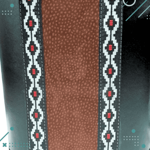 BOLSO MATERO UNIVERSAL COLOR NEGRO CON GUARDA Y CUERO CARPINCHO COLOR MARRON