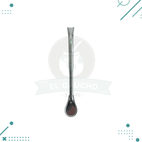 Fabricada en acero inoxidable de alta calidad, no se oxida, no retiene sabores y resulta muy fácil de limpiar. Su longitud de 20 cm la hace perfecta para mates de tamaño mediano a grande. El filtro integrado posee perforaciones uniformes que evitan que pasen partículas de yerba, brindando una experiencia suave y placentera.