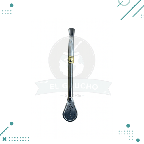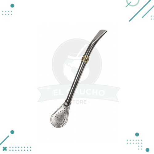 Fabricado en acero de alta calidad, ofrece durabilidad, fácil limpieza y un filtrado eficiente gracias a su boquilla perforada. Con un largo aproximado de 17 cm, es perfecto para mates de tamaño mediano a grande.