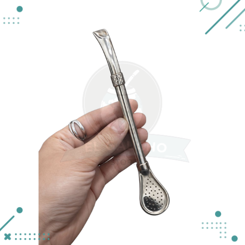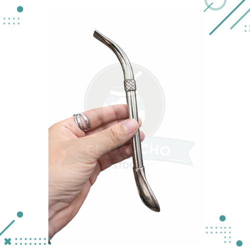 Un accesorio imprescindible para los verdaderos materos. Este bombillón de 18 cm, elaborado en alpaca de alta calidad, combina resistencia, tradición y elegancia. Su diseño incluye una delicada guarda plateada grabada, que aporta un detalle distintivo y artesanal.