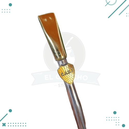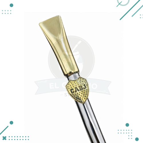 Disfrutá el mate con estilo y pasión xeneize. Este bombillón de Boca Juniors está fabricado en alpaca de alta calidad, con boquilla de bronce y un elegante dije de bronce con el escudo del club, que lo convierte en una pieza única para verdaderos hinchas.