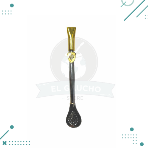 Cuenta con un dije de bronce con el escudo de River Plate, que le aporta un diseño distintivo y exclusivo. Su filtro tipo cuchara asegura una cebada cómoda y duradera, evitando el paso de yerba.