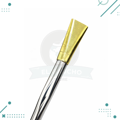 Elegancia y funcionalidad se unen en este bombillón artesanal de 18 cm, diseñado para realzar cada mateada. Su boquilla dorada estilo Pico de Rey ofrece un diseño sofisticado y cómodo, mientras que el cuerpo en alpaca pulida garantiza resistencia y durabilidad.