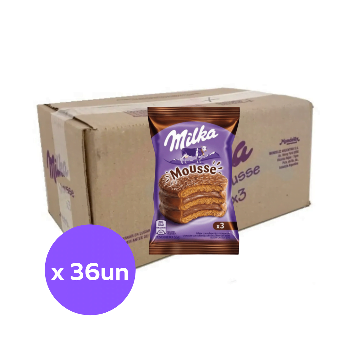 Alfajor Milka Triple Mousse, relleno de Dulce de Leche, con Baño de Chocolate (70gr.) (CAJA 36 UN.) (2.5 KG.)