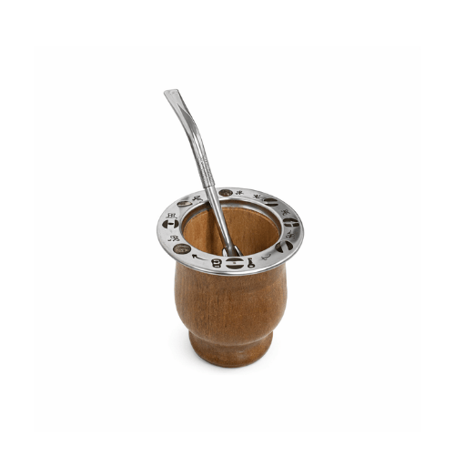 Mate camionero artesanal realizado en madera de algarrobo, reconocido por su resistencia, durabilidad y hermoso veteado natural. Cada pieza es única, ya que la madera presenta tonos y vetas propias del material natural.