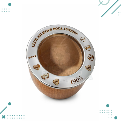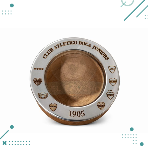 Fabricado en algarrobo seleccionado, cada mate es único gracias a las vetas propias de la madera. Su diseño robusto y cómodo lo hace perfecto para el uso diario, mientras que el grabado con escudos y el año 1905 le aporta un toque distintivo y coleccionable.