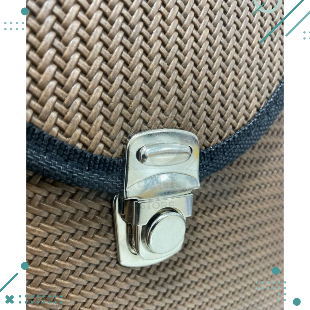 Canasta Matera con Tapa, Marron con Texturas. 20×20 Aprox,
