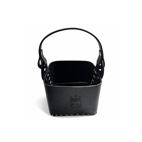 Canasta Matera Diseño Pelota, Premium 100% Cuero Primera Calidad, Color Negro (AFA)
