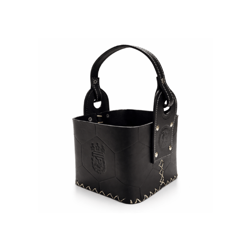 Canasta Matera Diseño Pelota – Premium 100% Cuero Primera Calidad (Negro – AFA)
