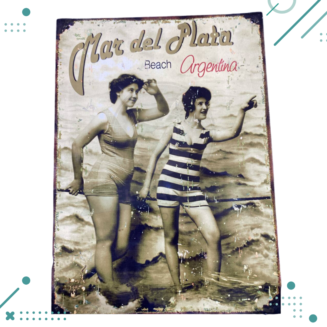 Cartel Chapa Mar del Plata Beach Argentina 20×28 cm
