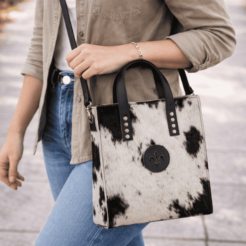 Cartera de Cuero y Pelo Negro y Blanco – Línea Premium (25 x 22 cm aprox.)