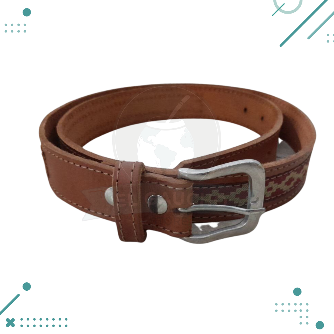 Cinturon Cuero Genuino 100% Artesanal, Cuero Color Suela, Guarda Roja, Modelo 13
