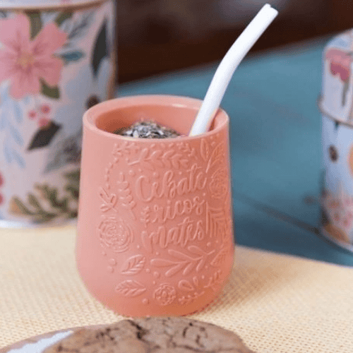 Combo Matero – Mate 3D Diseño Flores (rosa) + Yerbera De Lata Porongo + 500g Yerba Porongo Organica + Bombilla