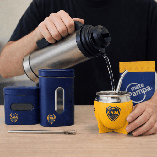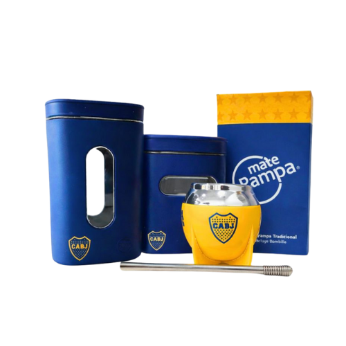 Combo Matero – Mate Pampa Bocon (boca juniors) + Yerbera/Azucarera Pampa (boca juniors) + Bombilla