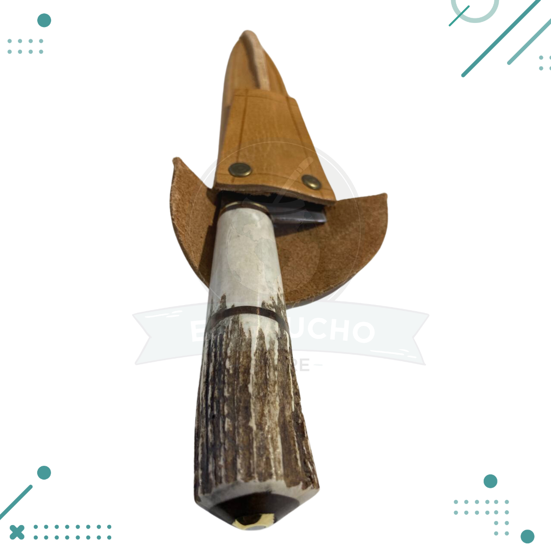 Cuchilla Mango de Asta de Ciervo Artesanal + vaina 100% cuero (32cm)