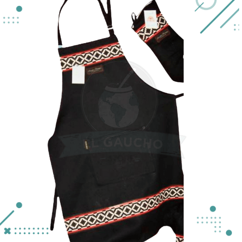 Delantal Asador Parrillero, Diseño Guarda Pampa, Color Negro