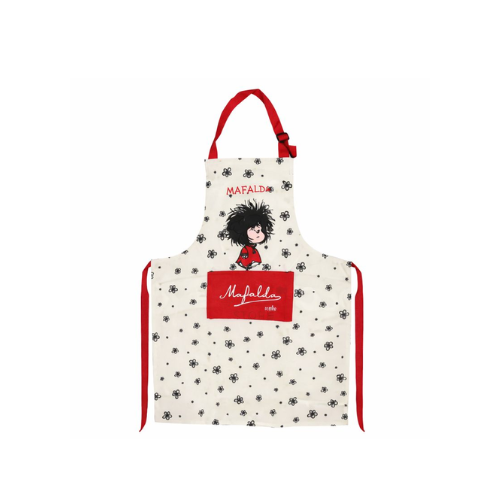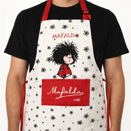 Cociná con estilo y una sonrisa con este delantal de Mafalda, el personaje más querido de Quino. Su diseño original y divertido le aporta personalidad a tu cocina, mientras que su confección en gabardina resistente lo hace práctico y duradero para el uso diario.