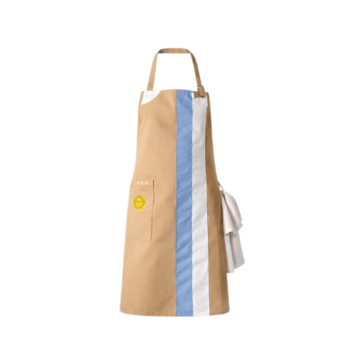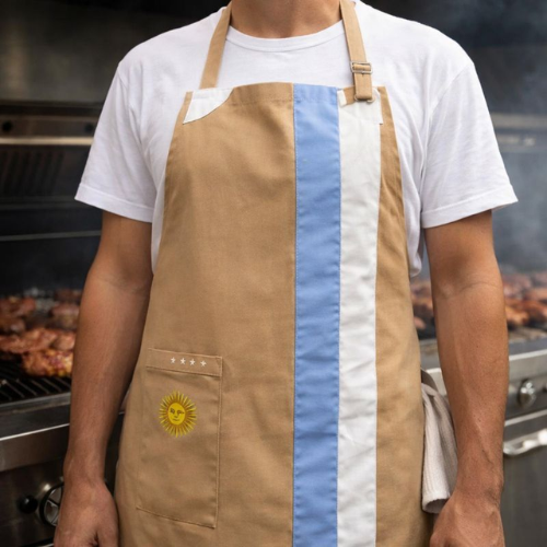 Confeccionado en tela resistente y de excelente calidad, ofrece protección y comodidad durante largas jornadas frente a la parrilla. Su diseño incluye bolsillo frontal funcional con el Sol de Mayo, costuras reforzadas y repasador a juego incluido, siempre a mano para mayor practicidad.