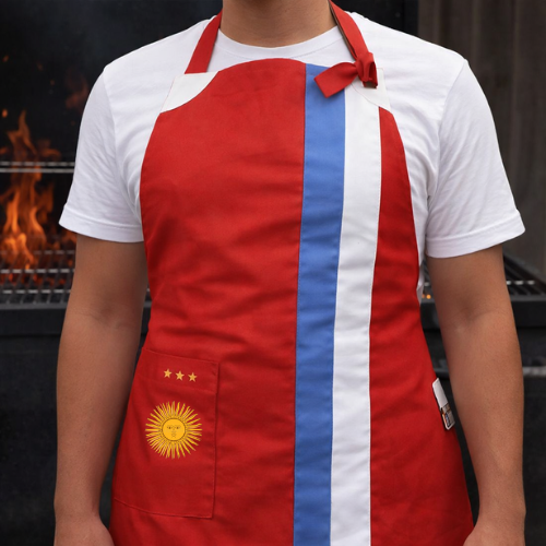Viví la pasión por el asado con este delantal parrillero inspirado en Argentina, ideal para quienes disfrutan la parrilla con estilo y orgullo. Su diseño en color rojo con detalles celeste y blanco rinde homenaje a los colores argentinos, combinando identidad, funcionalidad y presencia.