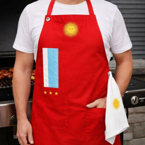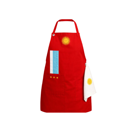 Delantal Parrillero + Repasador (Diseño Argentina) – Rojo con Franjas Celeste y Blanco