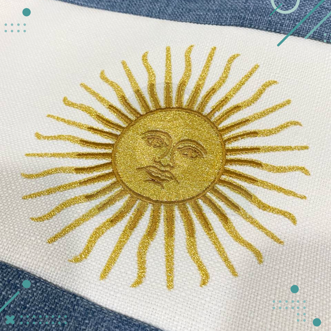 Funda para Almohadón Bandera Argentina es un producto hecho con el corazón; se trata de un almohadón de 50 x 50 cm confeccionado en lino de dos colores y con el sol bordado en el frente.