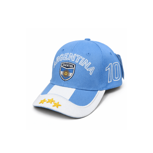Gorra de Gabardina ARGENTINA, Celeste y Blanca con Escudo, 3 Estrellas y el «10» Bordado