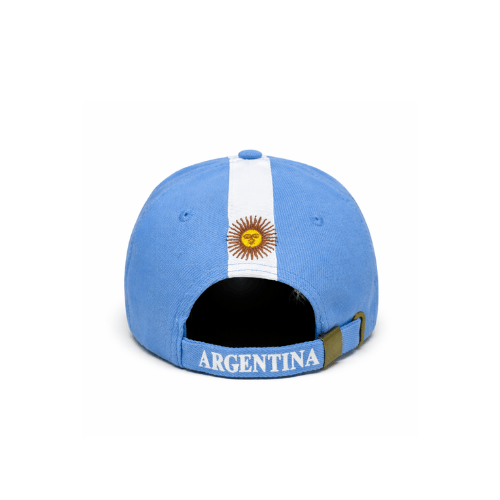Mostrá tu pasión por Argentina con esta gorra de gabardina en color celeste, diseñada con una franja blanca y el icónico sol bordado en el frente.