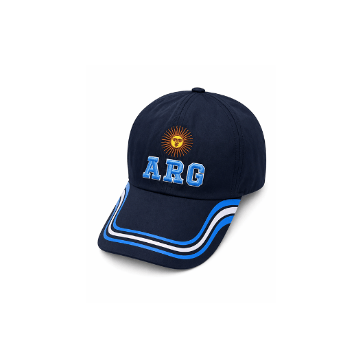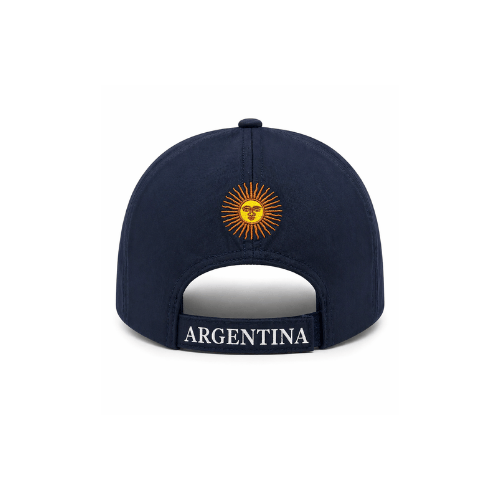 En el frente se destaca el bordado del icónico Sol de Mayo junto al logo “ARG”, aportando identidad y estilo. La visera curva incluye líneas dinámicas que realzan el diseño y le dan un look actual.
