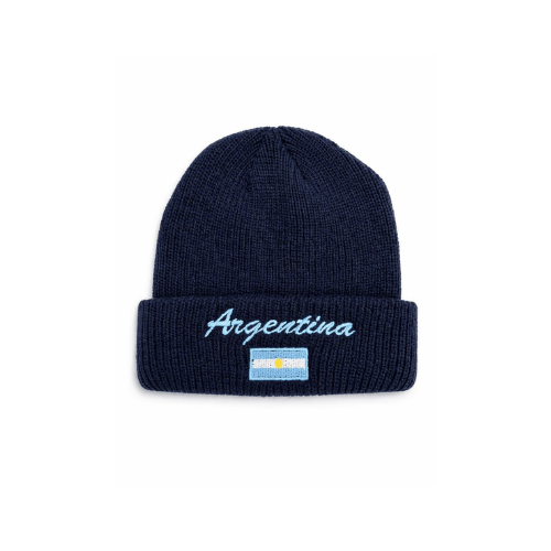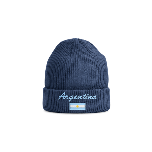 Clásico, cómodo y con identidad. Este gorro de lana tejido en tono azul profundo es ideal para los días fríos, combinando abrigo y estilo con un diseño representativo de Argentina. Presenta un bordado frontal con la palabra “Argentina” y la bandera nacional, que le aporta un detalle distintivo y auténtico.