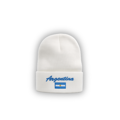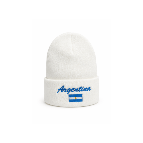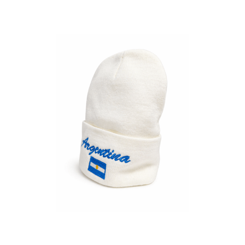 Sumá estilo y abrigo con este gorro de lana color blanco, diseñado con un look clásico y detalles que destacan. Con bordado frontal “Argentina” y la bandera nacional, es el complemento ideal para el invierno o para llevar tu pasión a todos lados.