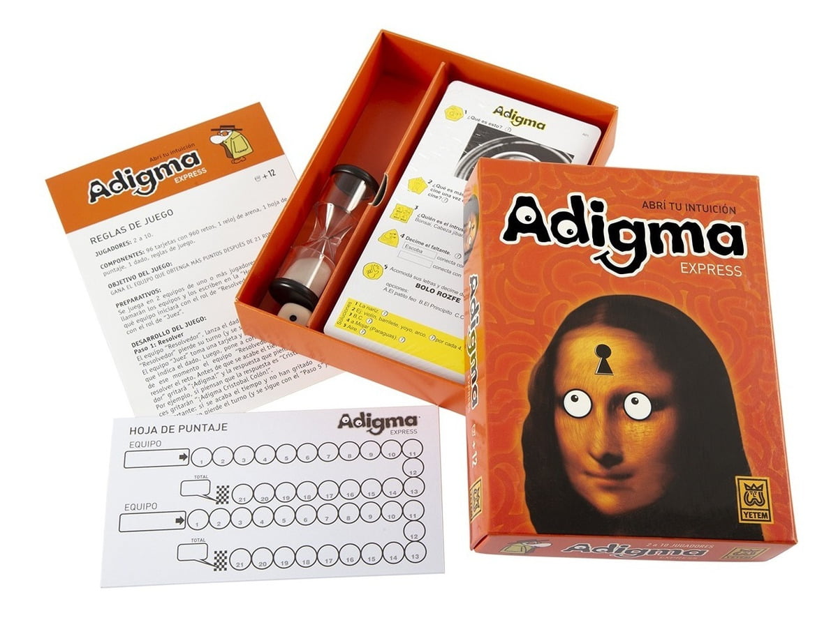 ADIGMA EXPRESS es un juego de mesa para jugar en 2 equipos de uno o más jugadores, donde solo necesitás tus habilidades para resolver los retos y así obtener los puntos para ganar.